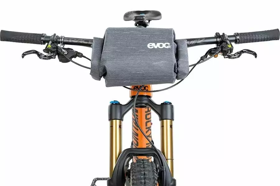 Evocin tilava ohjaustankolaukku. Laukun saa kätevästi kiinnitettyä ohjaustankoon klipseillä.
