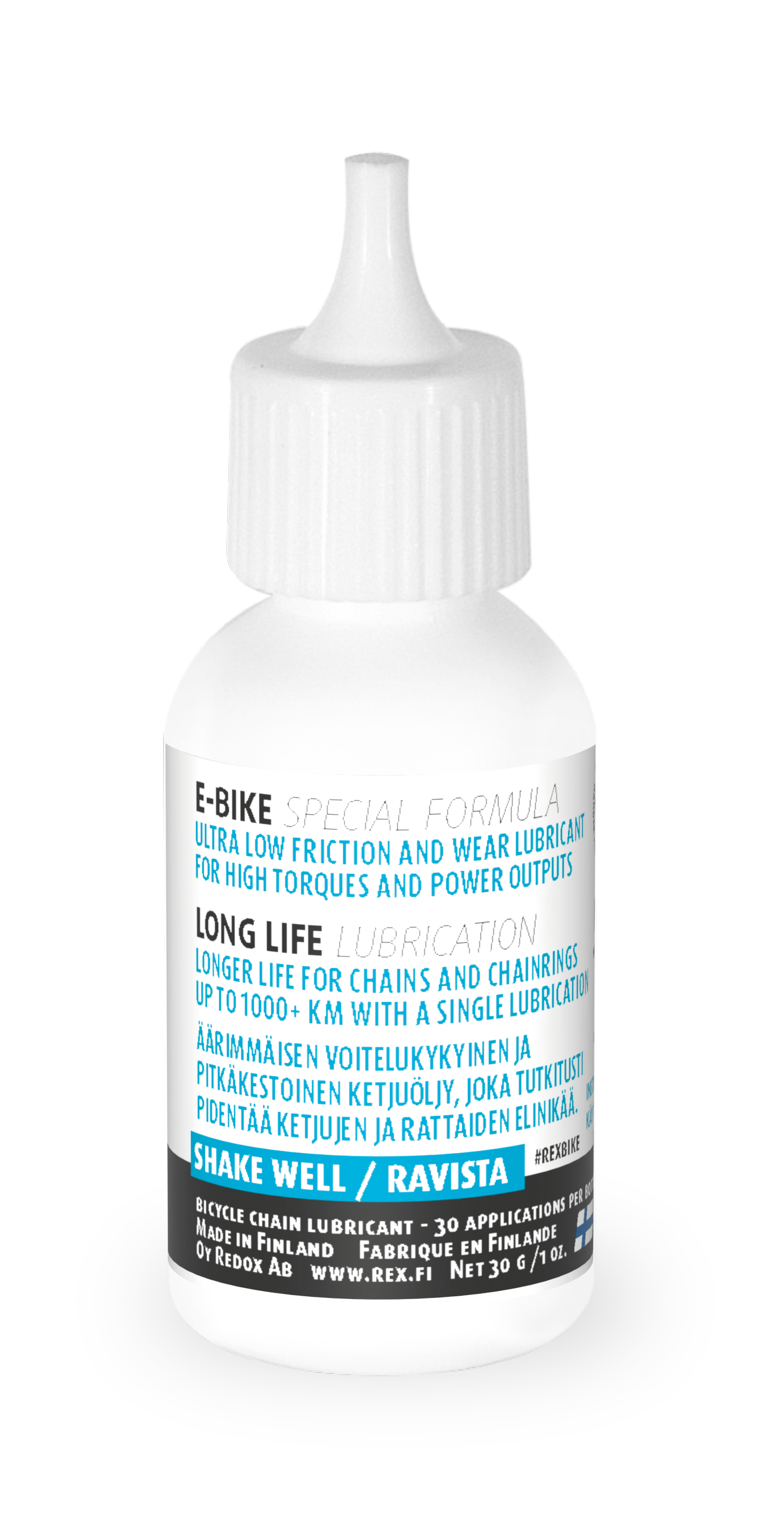 Sähköpyörissä ketjut ja rattaat altistuvat tavallista suuremmille voimille. Pienet rataskoot, matala kadenssi ja suuri teho ovat yhdistelmä, joka kuluttaa ketjut ja rattaat vaihtokuntoon nopeasti. Rex Black Diamond E-Bike ketjuöljy jopa kuusinkertaistaa sähköpyörän ketjun käyttöiän!
