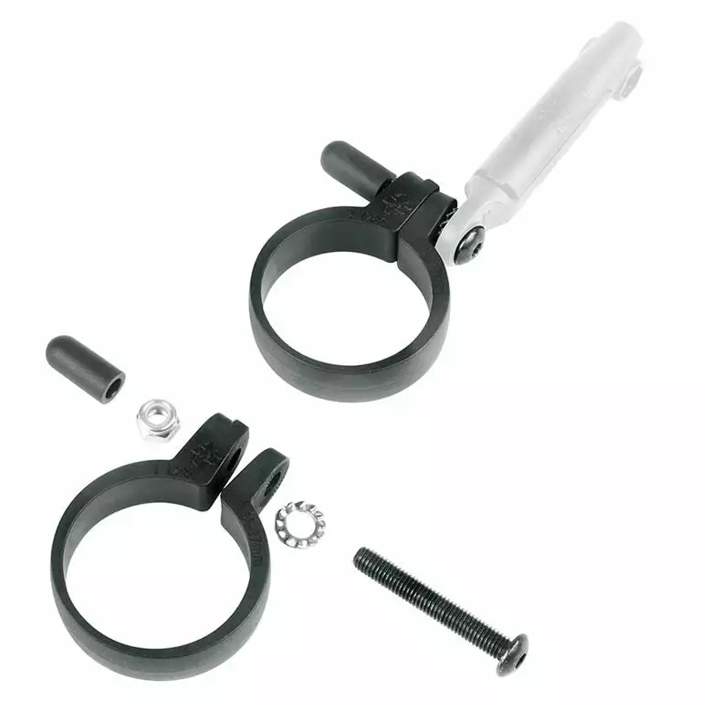 Käytännöllinen jousikiinnitys, joka mahdollistaa helpon ja mutkattoman kiinnityksen jousitettuihin haarukoihin. Sisältää ruuvit.